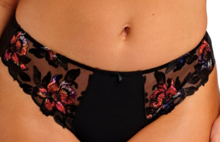 Magdalena, where luxury meets comfort. With intricate, heavily stitched, overprinted embroidery in vibrant sunset hues against a black base. Magdalena thong is available in Noir (Black) and Ivory.
